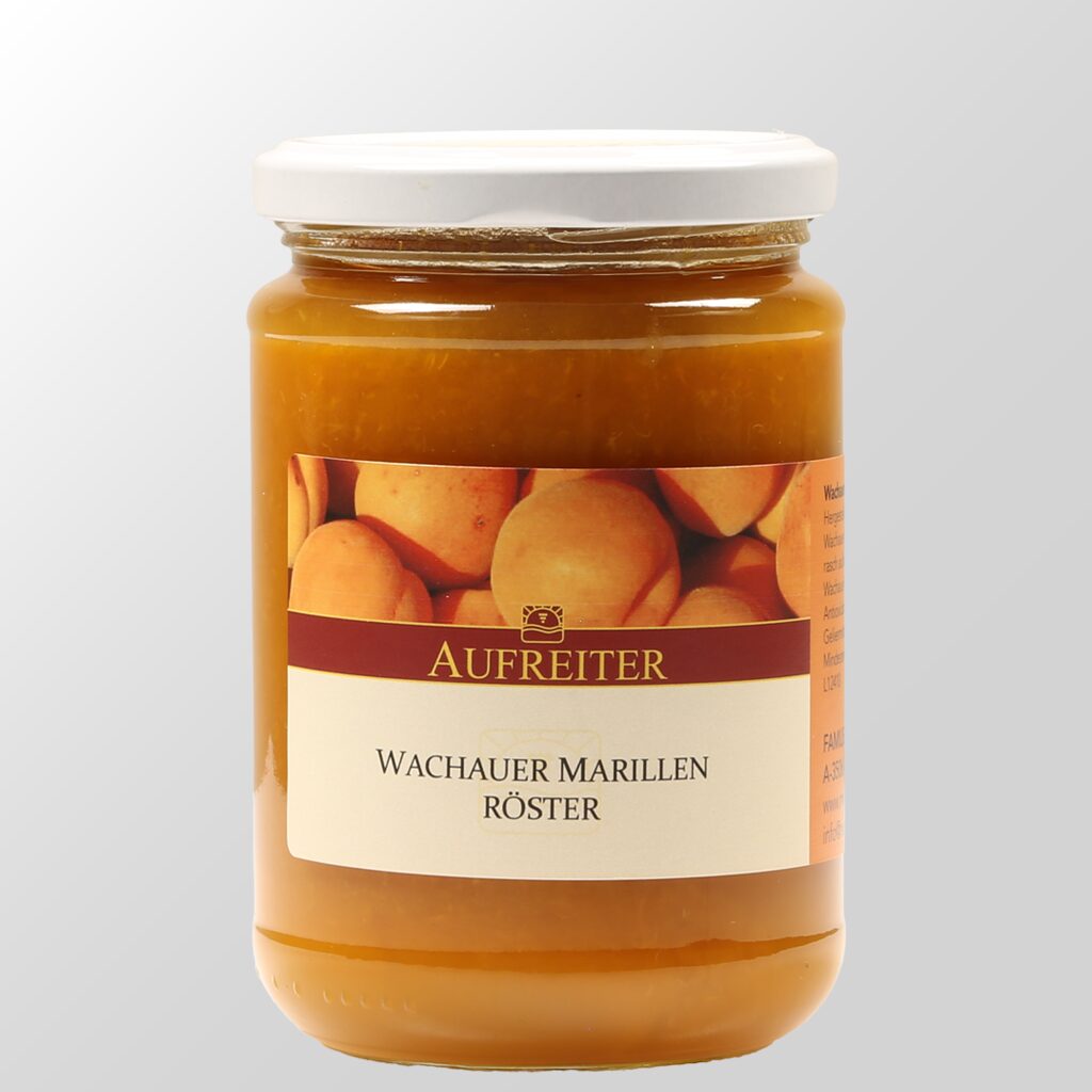 Für unseren Wachauer Marillen Röster verwenden wir (wie immer) frisch geerntete und in Stücke geschnittene Wachauer Marillen, die mit extra wenig Zucker und Apfelpektin langsam am Herd erhitzt werden.